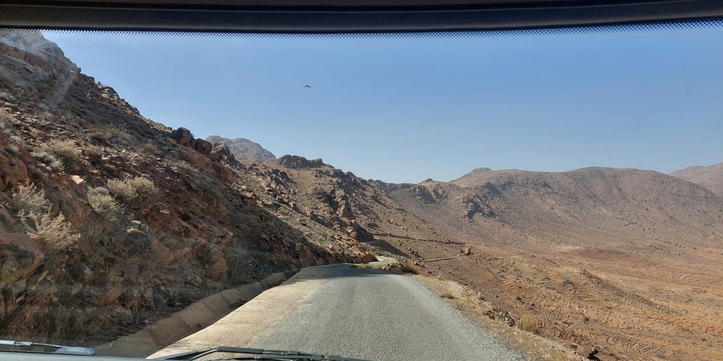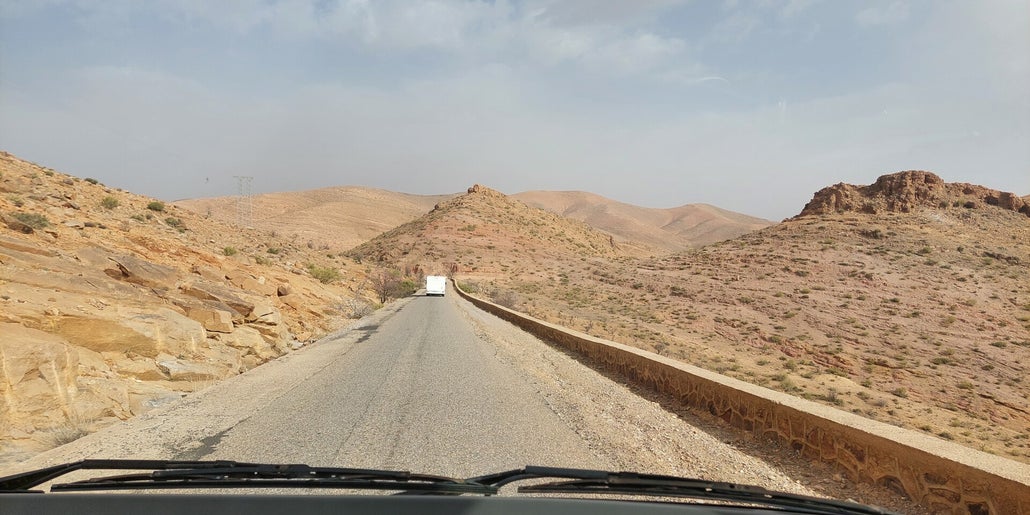 Der Weg führt uns durch den Antiatlas, der zwischen dem Atlas und den Sahara-Wüstengebieten liegt. Wir kommen auf 1.477 m Höhe und sind beeindruckt. Teilweise sind wir auch froh, dass so wenig Verkehr herrscht, denn die Straßen sind nicht sehr breit.