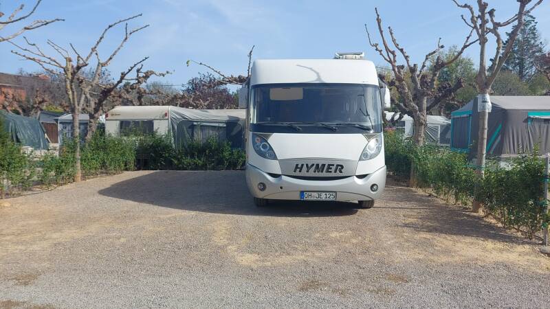 Auf dem Platz ist alles sehr eng, so dass Rainer ordentlich zu tun hat in die Parzelle reinzukommen. Auch schon die Fahrt dorthin war sehr tricky. Zu guter Letzt der Platz ist mit knapp 30 Euro zu teuer.