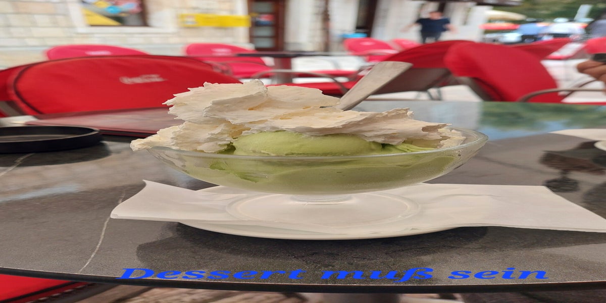 Am Montag, wir gegammelt und nach dem Mittagessen, Tomatensauce mit Nudeln, fahren wir in den Ort, der dem Campingplatz seinen Namen gegeben hat nach Omisalj. Wir bummeln durch den Ort und treffen auf dem Rundweg wieder an das kleine Eiscafé. Ich bestelle mit ein Crêpe mit einer Kugel Eis. Doch was bekomme ich?! Eine leckere Cremeschnitte mit einer Kugel Eis. 😋 Auf dem Weg zum Roller, kommen wir an einem Supermarkt vorbei, wo ich das vergessene Salz kaufen kann. Was fällt mir da im Regal auf? Haferflocken von Brüggen aus Lübeck. Bei uns zuhause habe ich die noch nie gesehen