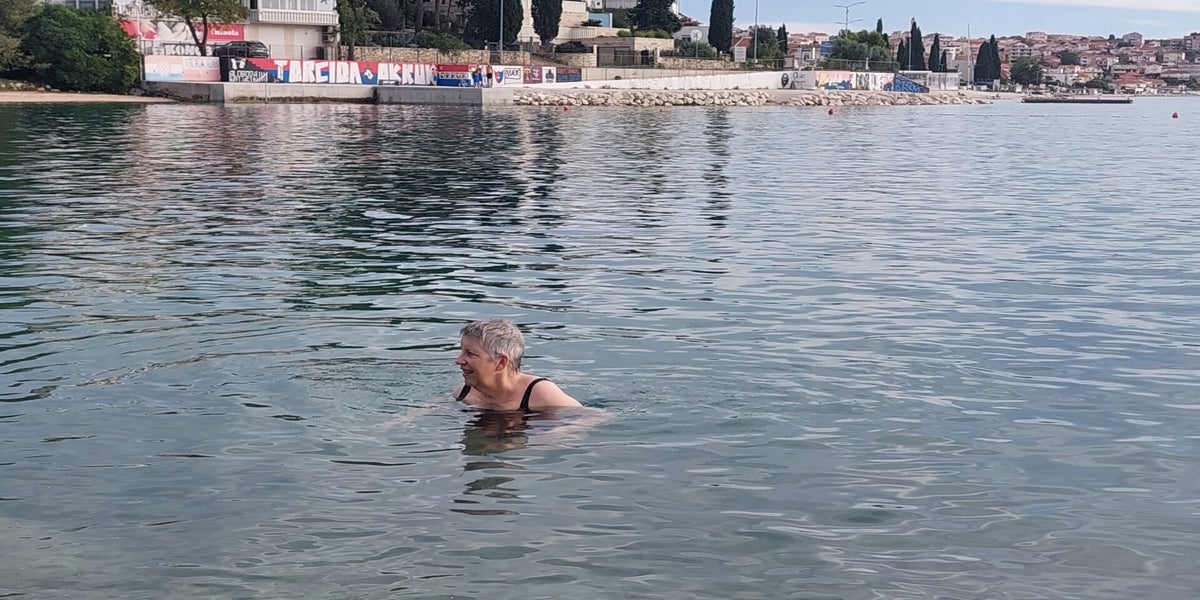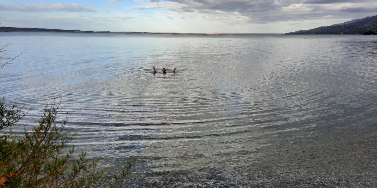 Wir reisen weiter, und landen für eine Nacht auf dem Campingplatz Viter in Zaostrog. Die Fahrt führt überwiegend auf der Autobahn durch eine Steppenlandschaft. Wir treffen auf ein nerviges Mädel, die uns durch eine Katze nicht von der Pelle rückt. Das tägliche Bad ist angesagt, heute geht auch Rainer mit ins Wasser.