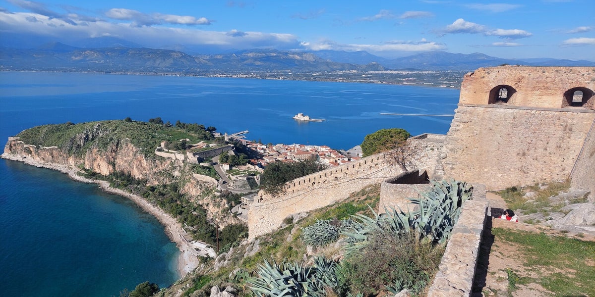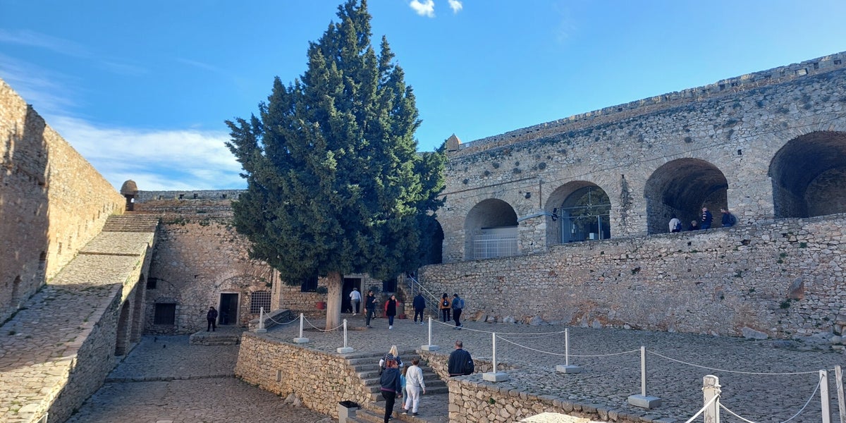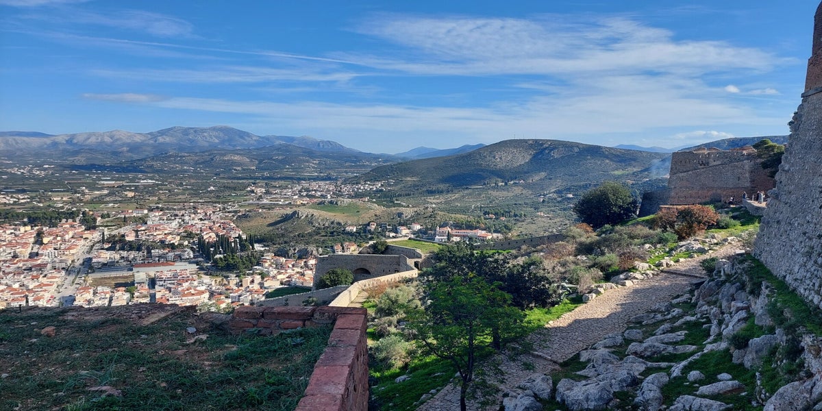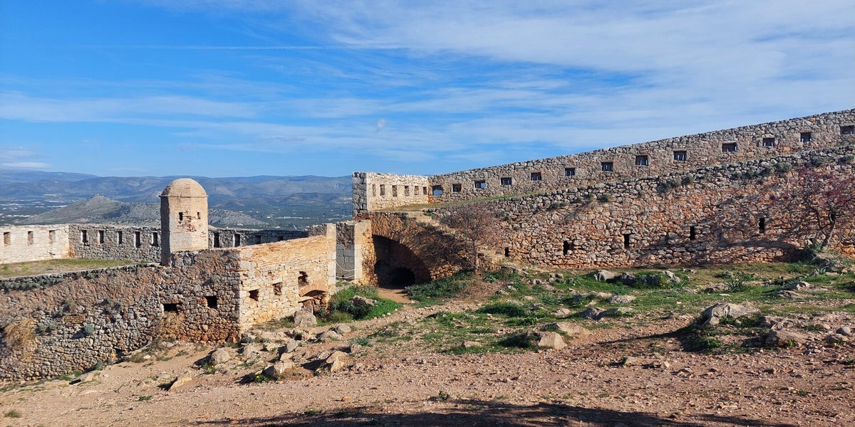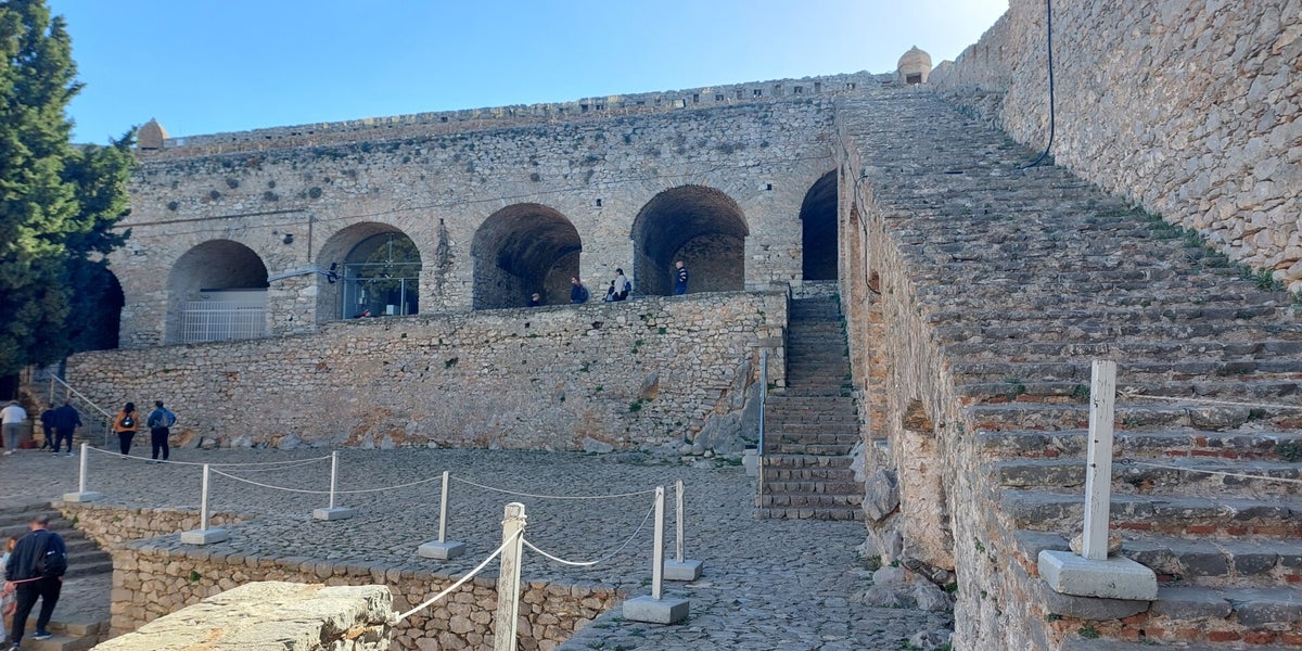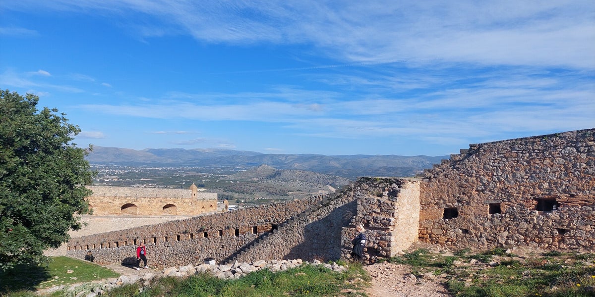 Am 04.01. fahren wir dann endlich auf die venezianische Festung Palamidi auf 220 m Höhe, oberhalb von Nafplio. Die Festung wurde von den Venezianern während der Herrschaft von Morea erbaut. Es geht bergauf und bergab, alles haben wir nicht erklommen. Wir hatten einen tollen Blick über die Landschaft ringsherum.