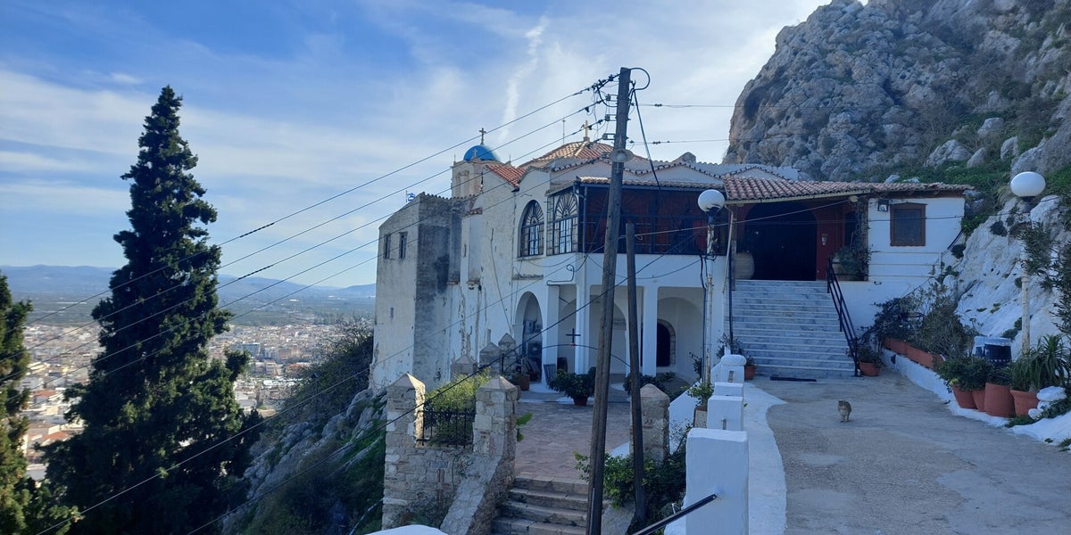 Wir wollen uns die Felsenkirche (Zoodochos Pigi Orthodoxe Kirche- Kefalari) bei Argos ansehen. Die Kirche ist auch eine Pilgerstätte.