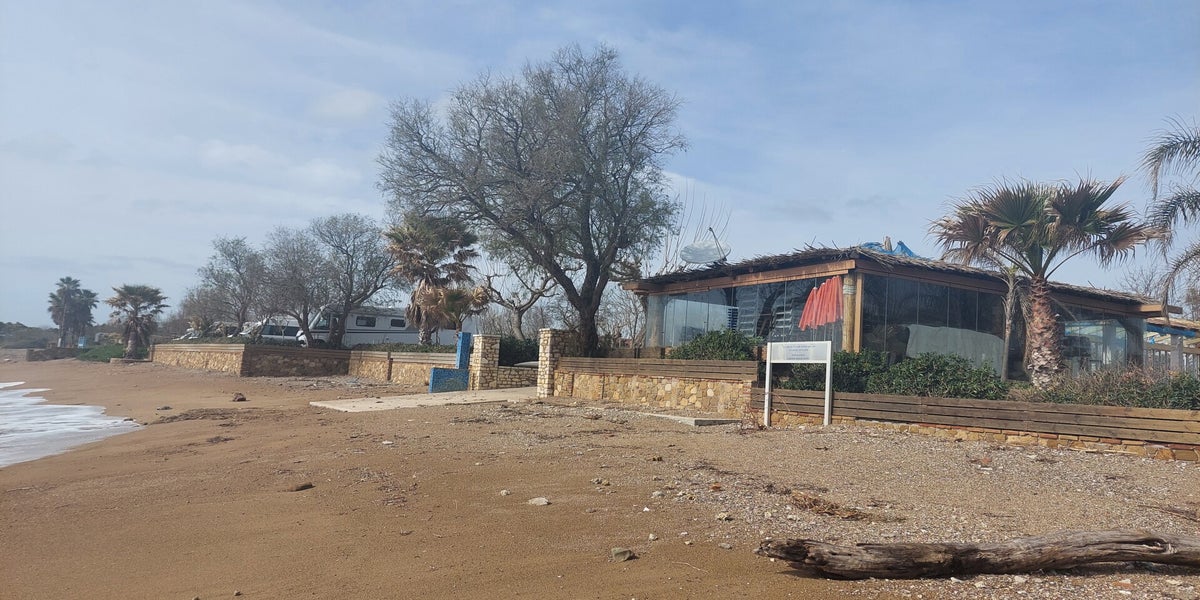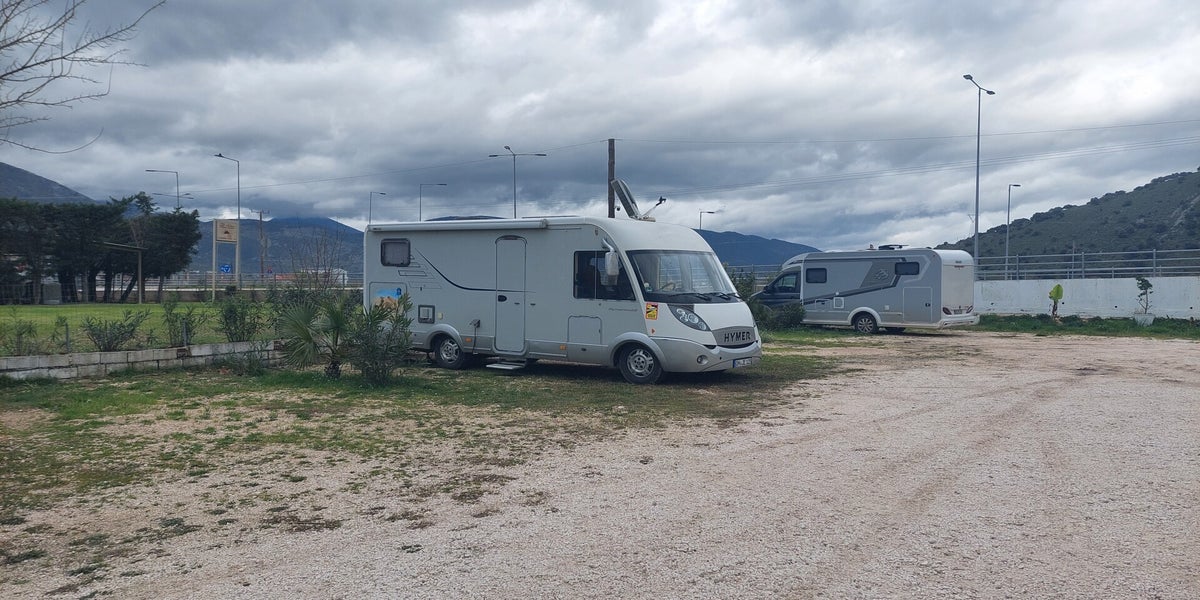 Camping Ionion Beach am 01.03.2024. Der Campingplatz ist vom allerfeinsten. Die Plätze sind großzügig, die sanitären Anlagen Top, gibt nichts zu mäkern. Und doch uns gefällt es hier nicht. Wir sind hier in der totalen Pampa, der nächst größere Ort ist ca. 40 km entfernt. Und wer gerne Essen geht, ist hier falsch. Wir haben hier das Wochenende verbracht, die Wäsche gewaschen und nun machen wir uns am Montag auf zum nächsten Ziel, oder zur nächsten Steckdose. We hope so. Baden hab ich mich nicht getraut, es sind so viele Felsen am Strand und wohl auch im Meer.