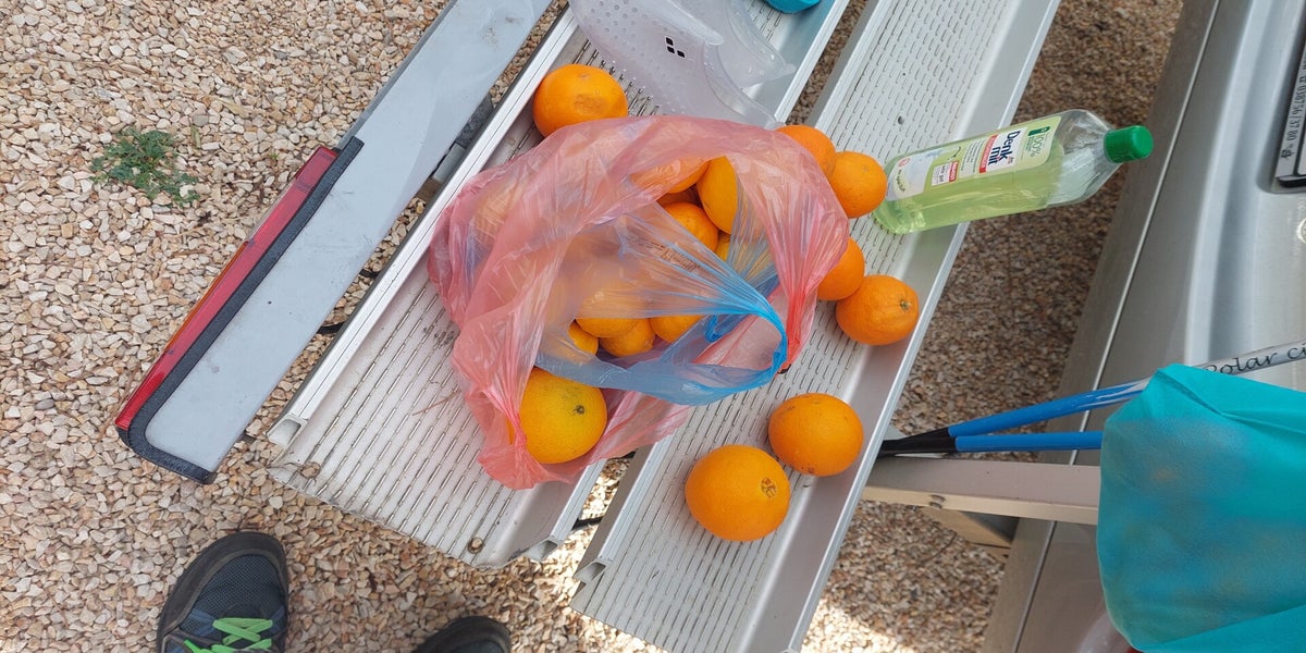 Bei einem Spaziergang haben wir unsere Wochenration an Mandarinen am Wegesrand gepflückt.