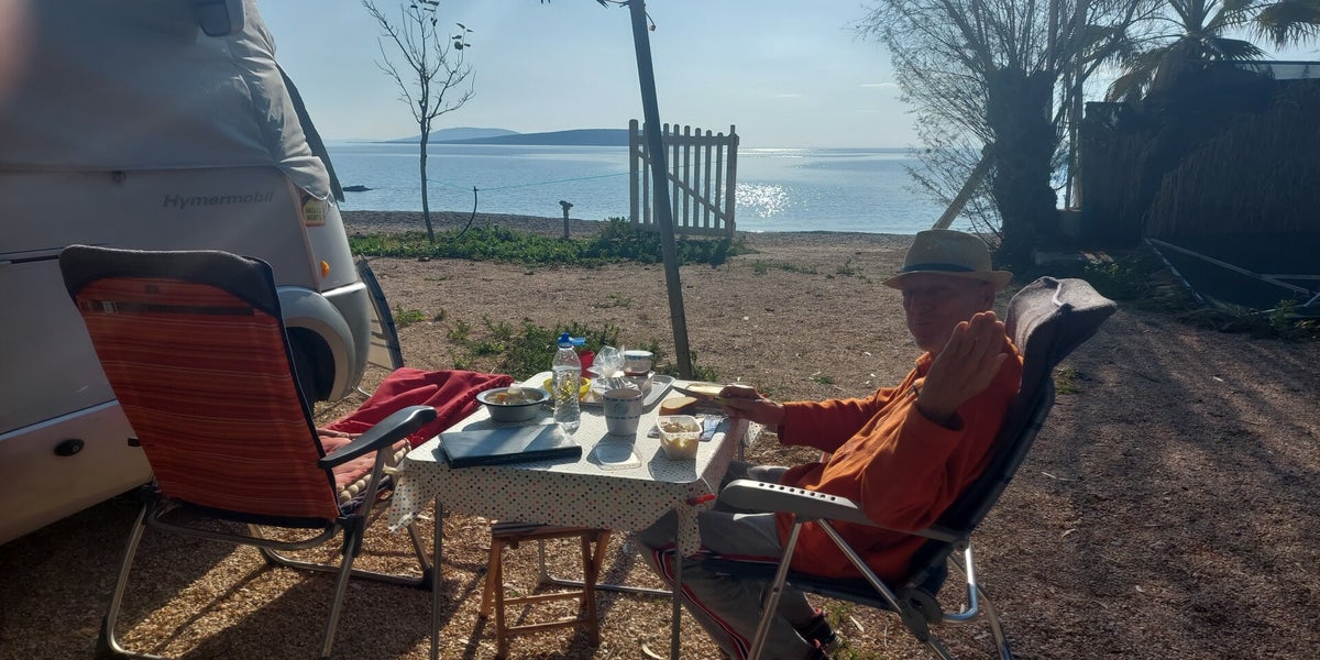 Lustig: am Morgen klopft erst Adrian vom Campingplatz zum Kassieren. Rainer erklärt ihm im Schlafanzug das wir bleiben; er grinst und trollt sich. Eine gute Stunde später klopft unser Nachbar und will sich verabschieden. Rainer öffnet (immer noch im Schlafanzug) und erklärt auch ihm: wir bleiben.