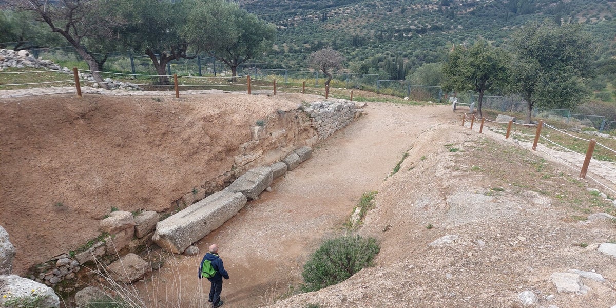Die Woche dümpelt so vor sich hin, bis wir am Samstag beschließen nach Mykene zu fahren. Doch leider auch nicht wirklich vorbereitet. An der 1. Ausgrabung, sagt Herr Hase hier will ich gar nicht hin. Ok, wo willst du denn hin. Wir gucken bei Google. Er zeigt darauf wo er hinwill, also los. Unterwegs haben wir dann noch ein Problem mit 2 vierbeinigen Verfolgern. Dadurch kommen wir vom Weg ab und müssen tatsächlich im wahrsten Sinne des Wortes über Stock und Stein fahren. Als das Navi uns sagt ihr Ziel liegt links, gucken wir beide etwas irritiert an und fragen uns wo in dieser Wildnis ist das Ziel? Bei etwas genauerer Überlegung kommen wir darauf, dass das Ziel da ist, wo wir ganz zu Anfang waren.