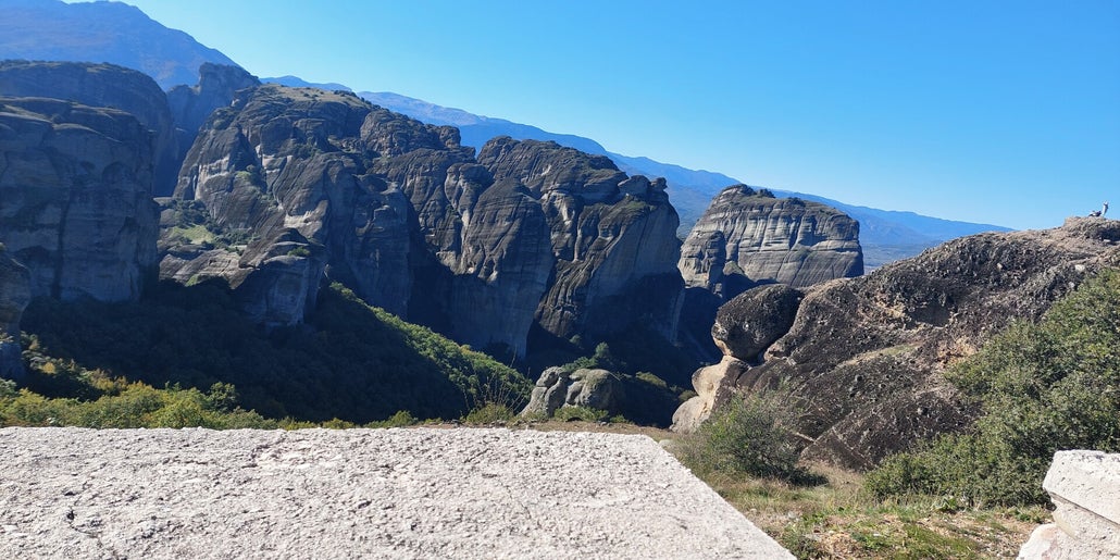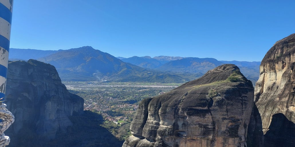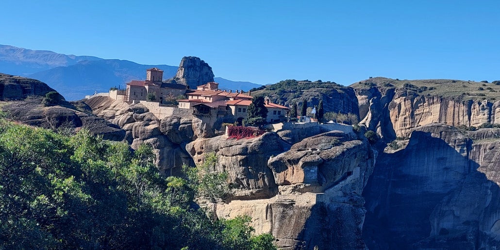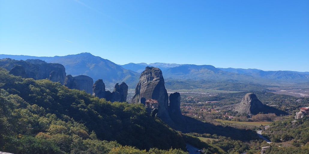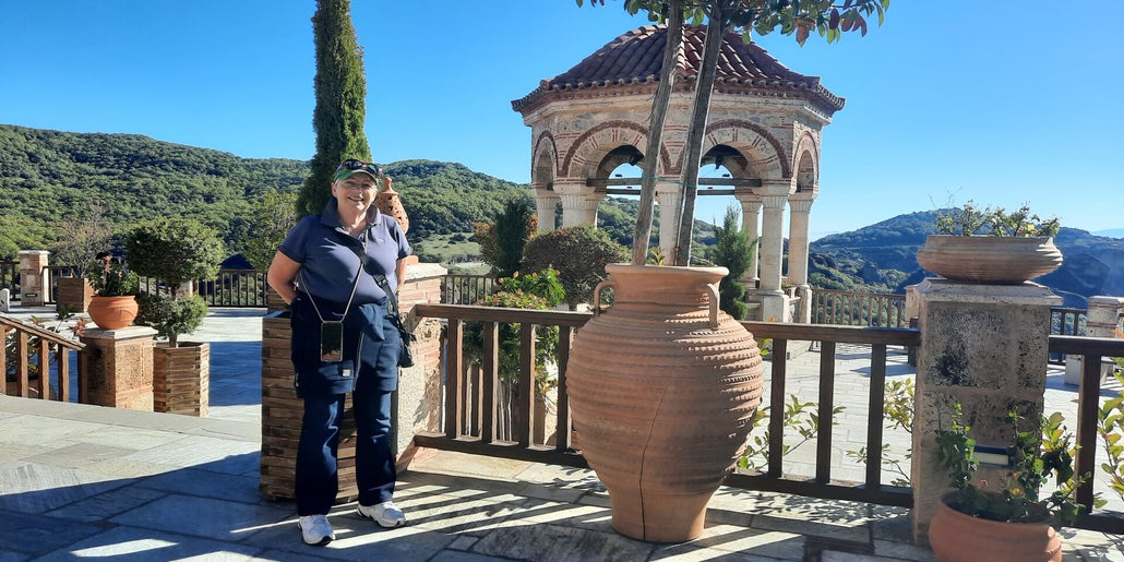 Die Klöster von Meteora sind unser Ziel. Am Montag wachen wir mit 5 Grad Außentemperatur auf, aber dies soll uns nicht abschrecken, wir haben ja warme Kleidung mit. Nach dem Frühstück geht es dann los. Wenn wir losziehen ist es ja schon fast Mittag, und dann sind wir ja noch eine Stunde im Voraus. Die Gegend ist der Hammer und ich werde voll gefordert, es geht ohne Ende Bergauf, Treppenstufen über Treppenstufen. Beim Kloster St. Nikolaos Anapavsas, werde ich darauf Aufmerksam gemacht, dass ich einen Rock tragen muss. Für diese Verkleidung gibt es diverse Tücher, kostenfrei. Beim Varlaam Kloster, hier wurde ein James Bond Film gedreht, sollte ich für so ein Tuch 3,50 Euro bezahlen. Da verzichte ich doch lieber auf eine Besichtigung. Doch dann hatte ich eine Idee, ich habe meine Jacke als Rock umfunktioniert und durfte damit ins Kloster. Weitere Kloster waren nicht mehr drin, ich war sowas von fertig. Wir gehen noch etwas essen, meins ist nicht so dolle, aber Rainer ist sehr zufrieden. Der restliche Tag ist für die Erholung da. Meistens war fotografieren verboten.
