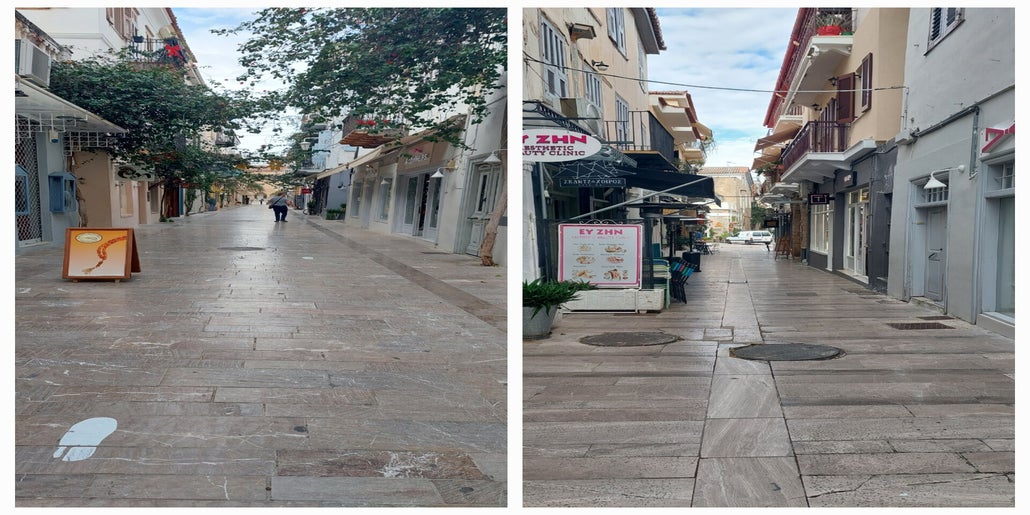 Einmal waren wir in Tolo. Den Ort kann man von hier aussehen, er ist ca. 4 km entfernt und sehr langgezogen. Auf den Bildern kann man es sehr gut erkennen, der Ortsrand liegt unmittelbar am Meer. Wir konnten fast komplett durchgehen.