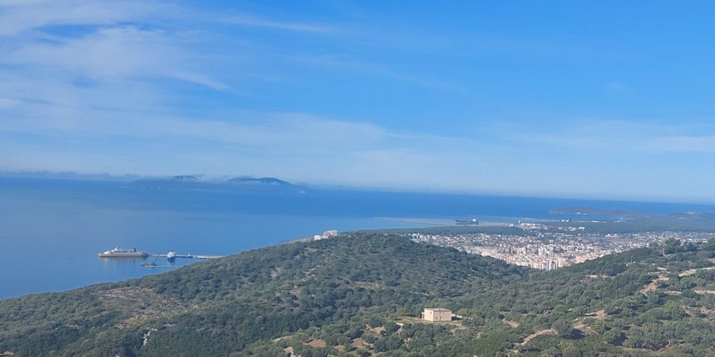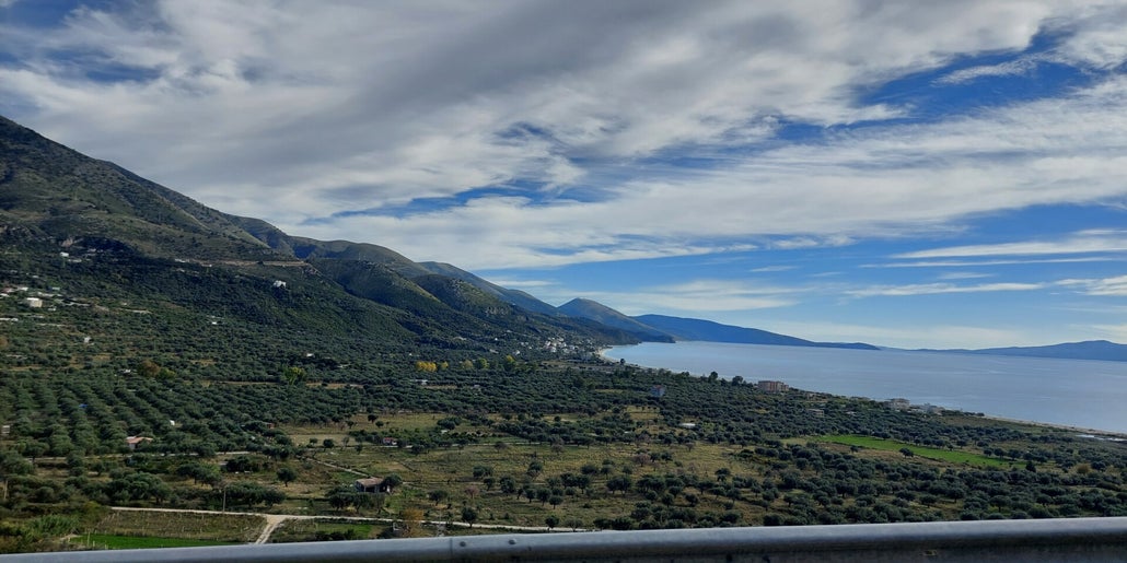 What for a day. Es ist immer schön, wenn man nicht weiß, was auf einen zukommt, Beispielsweise auf uns. Missverständnisse sind dazu da um sie auszuführen. Rainer hat 3 Routen gesehen und wollte die mittlere Route fahren. Ich aber habe angenommen er will die Autobahn fahren. So sind wir zur Autobahn gefahren, ca. 20 km bis Panaja, da haben wir uns entschieden zurück auf die schöne Strecke zufahren. Es gibt nur ein Foto von Vlora von oben. Etwas sparsam haben wir dann geguckt, als plötzlich der Kreisel von Orikum auftauchte an dem wir am Vortag mit dem Roller umgekehrt sind. Im Nachhinein haben wir festgestellt, dass wir in Vlora die falsche Abzweige genommen haben. Aber egal wir stehen das durch und fahren weiter. So sind wir 180 km in 4,5 Stunden gefahren. Unsere Geschwindigkeit lag zwischen 10 und 40 km/h, am Ende sind wir tatsächlich auch mal über 60 km/h gefahren. Wir haben viel gesehen und einige Fotos geschossen. Die Freude bei Ankunft auf dem kleinen Campingplatz war groß, wir wurden von Linda mit Handschlag begrüßt und haben ein Tablett mit Leckereien erhalten.
