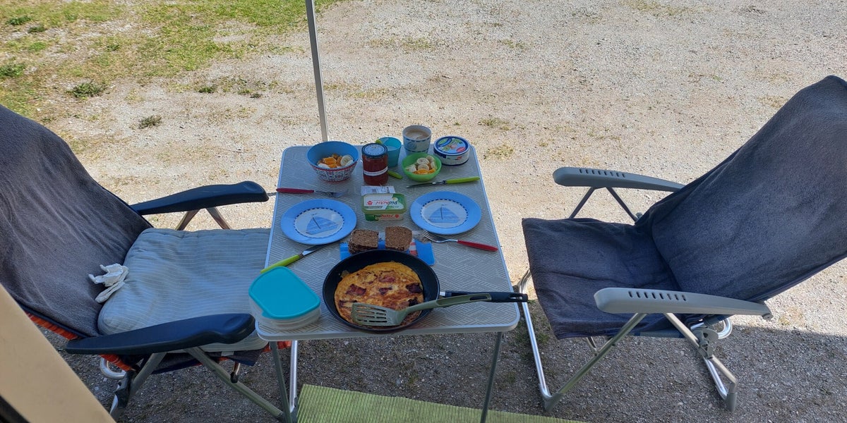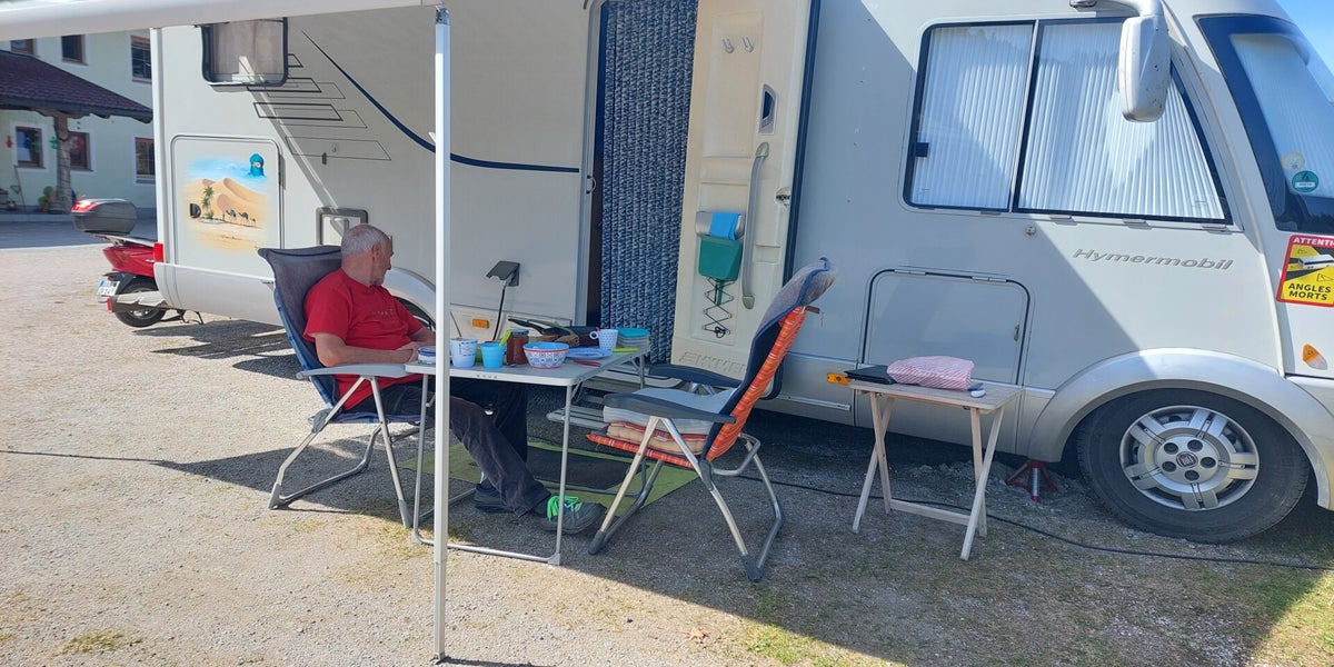Im Anschluss chillen wir im Schatten vor dem Wohnmobil, denn in der Sonne ist es viel zu heiss.