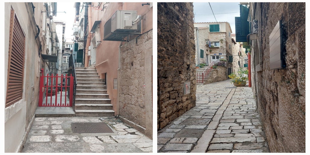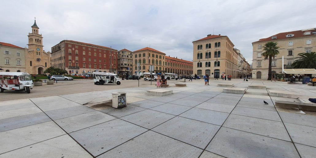 Am nächsten Tag geht es auf nach Split. Wir teilen uns die Stadt mit diversen Kreuzfahrergästen und wohl einigen Bustouristen. Als wir in der Altstadt ankommen, fällt mir als erstes der große Markt mit den diversen Touristenangeboten auf. Wir bleiben standhaft und kaufen nix.