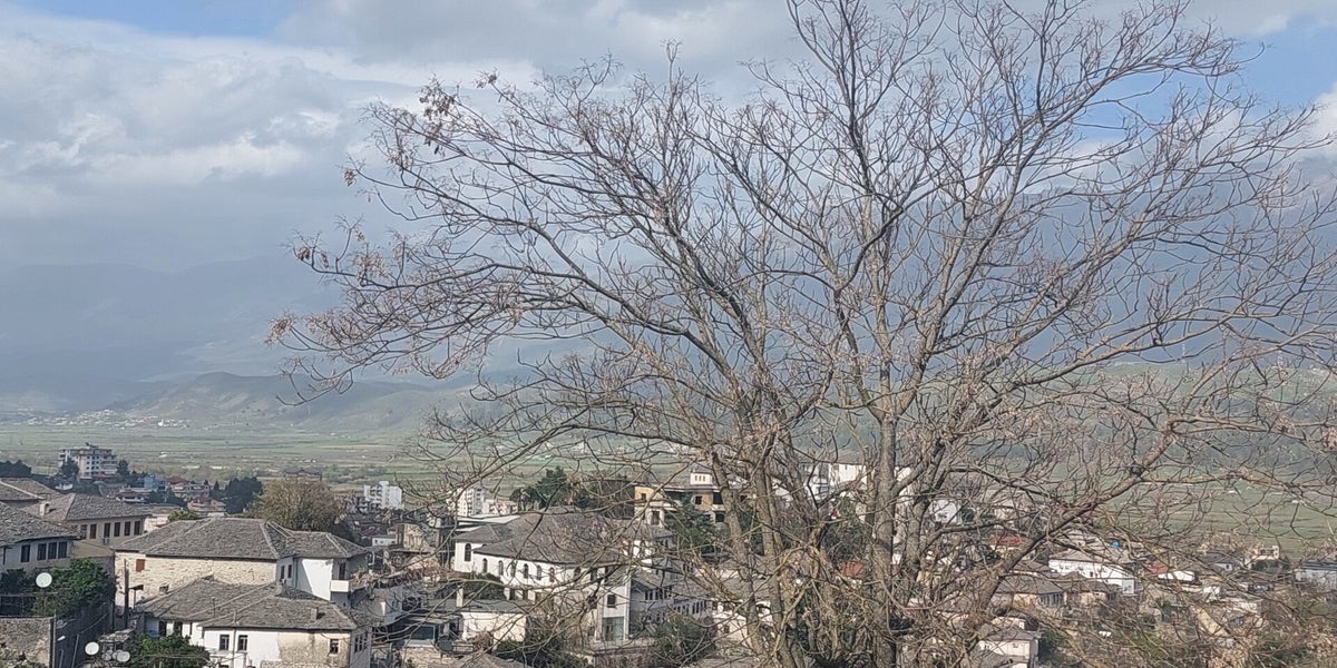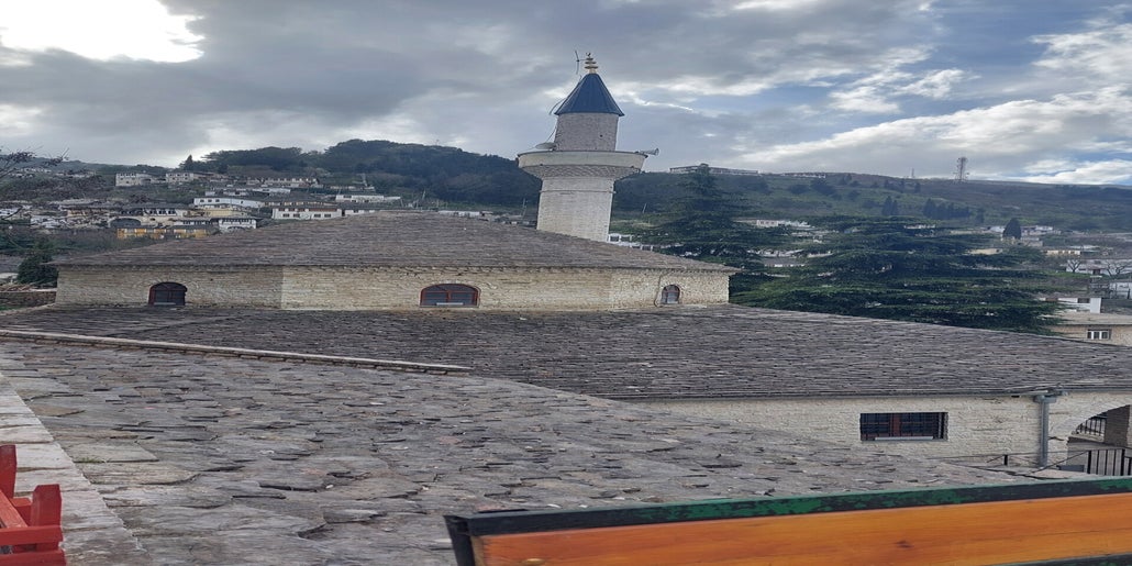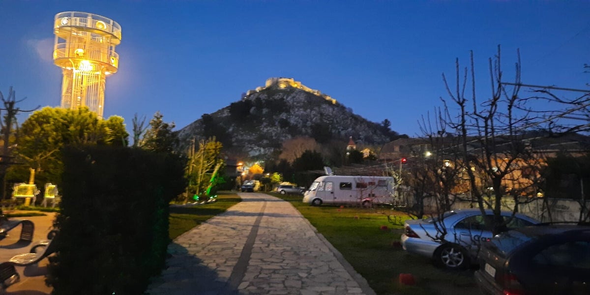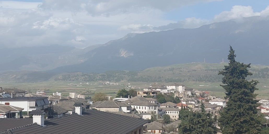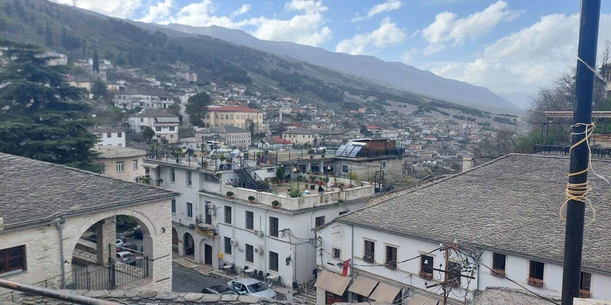 Gjirokastra, wir kommen gegen Mittag an und Rainer entscheidet sich für den Nachbarstellplatz, die Geschmäcker sind eben verschieden. Nachdem wir uns eingerichtet haben, den Roller runter und die Böcke drunter, stell ich fest, das wir quasi neben der Strasse stehen, da es sich um ein Eckgrundstück handelt. Mich stört es nicht, ich bin nicht Geräusch empfindlich, das Gewitter in der Nacht habe ich auch nicht gehört. Die Leute sind sehr freundlich und die Mutter kommt vorbei um für uns zu kochen.