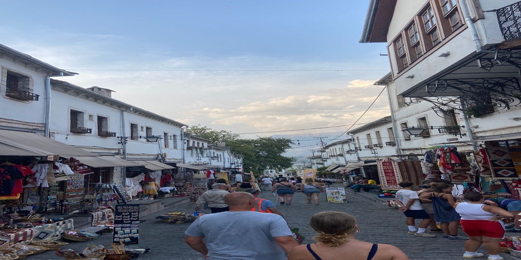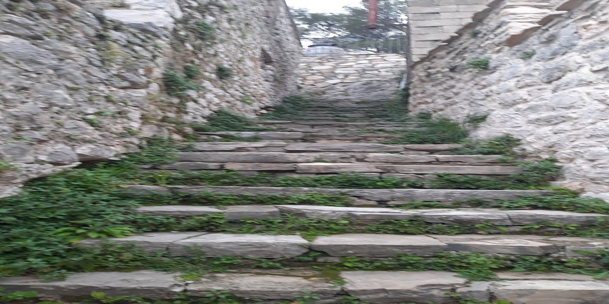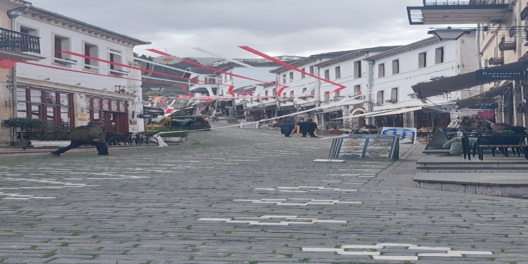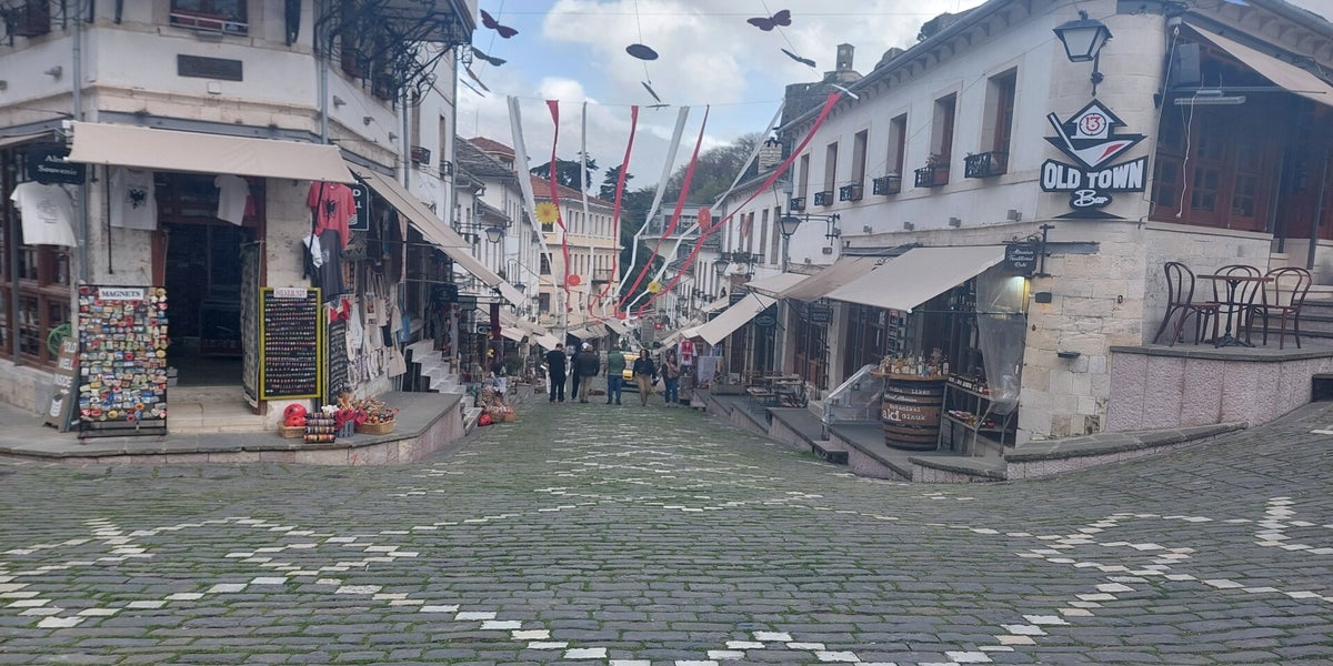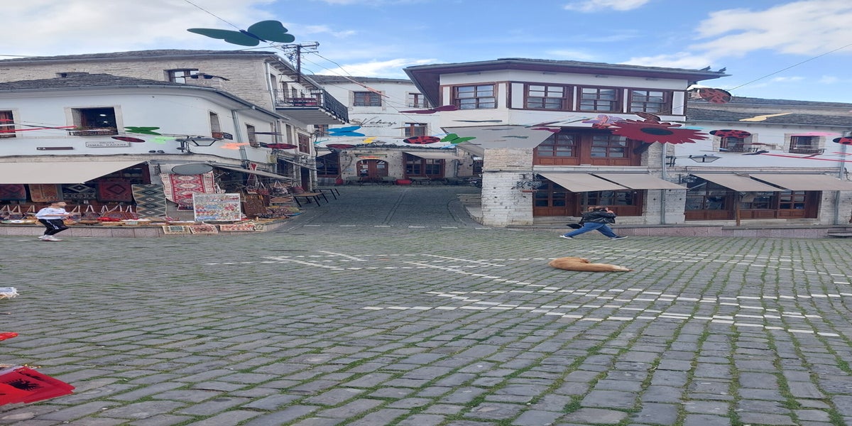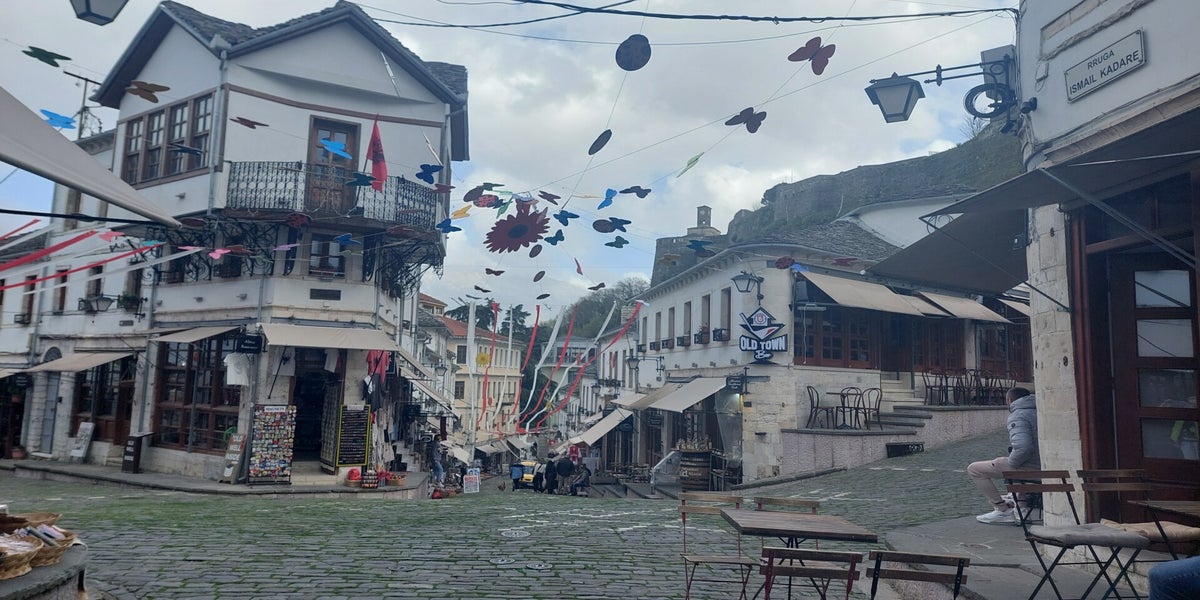 Gjirokastra, wir kommen gegen Mittag an und Rainer entscheidet sich für den Nachbarstellplatz, die Geschmäcker sind eben verschieden. Nachdem wir uns eingerichtet haben, den Roller runter und die Böcke drunter, stell ich fest, das wir quasi neben der Strasse stehen, da es sich um ein Eckgrundstück handelt. Mich stört es nicht, ich bin nicht Geräusch empfindlich, das Gewitter in der Nacht habe ich auch nicht gehört. Die Leute sind sehr freundlich und die Mutter kommt vorbei um für uns zu kochen.