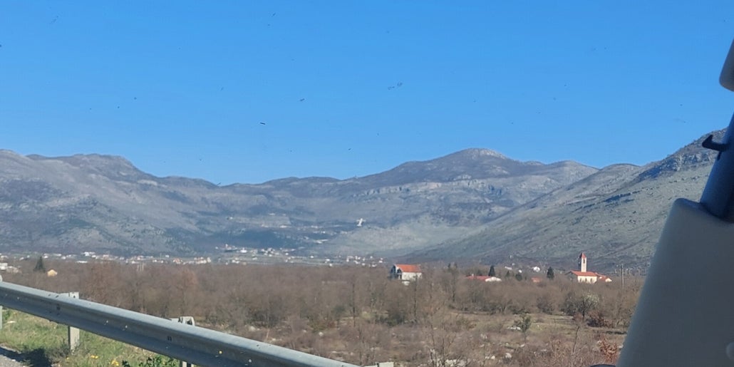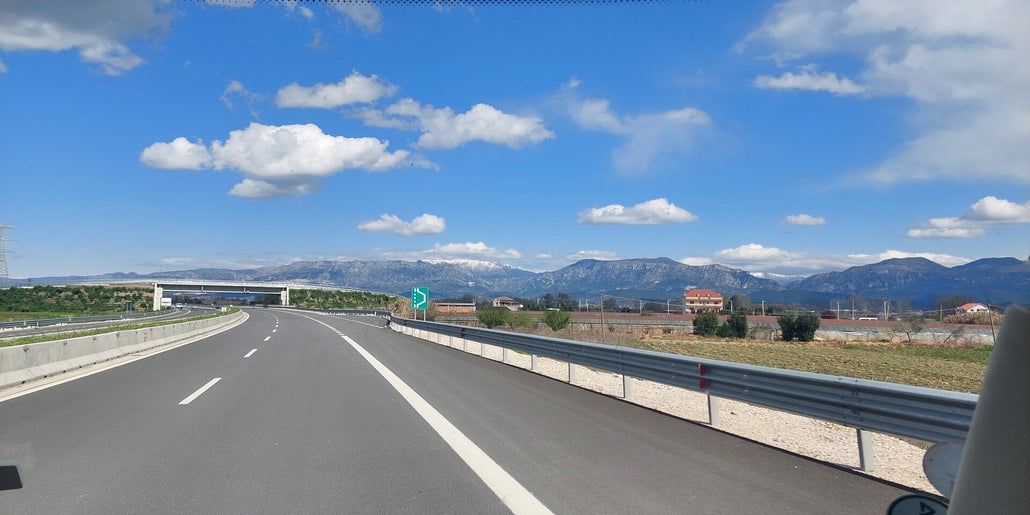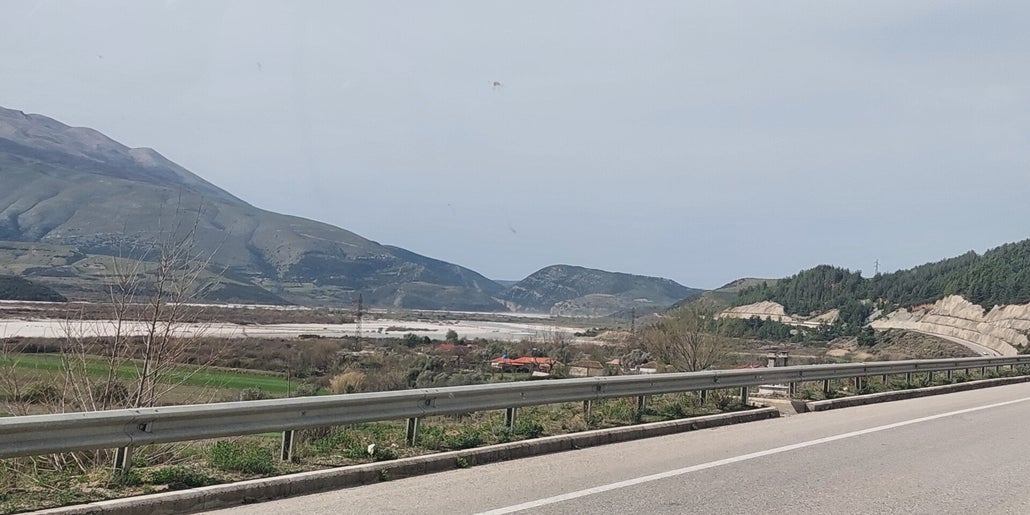 Eins von den Fotos ist aus dem Sommer 2024 und von dem Denkmal gibt es in Albanien eine ganze Menge. Als wir weiterreisen, haben wir am Morgen einen blauen Himmel, was sich aber im Laufe des Tages noch ändern wird.