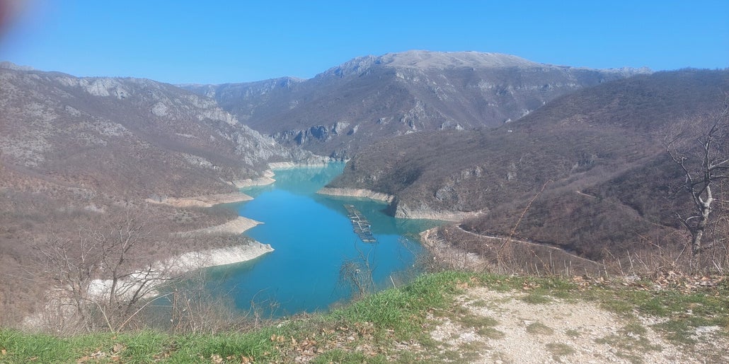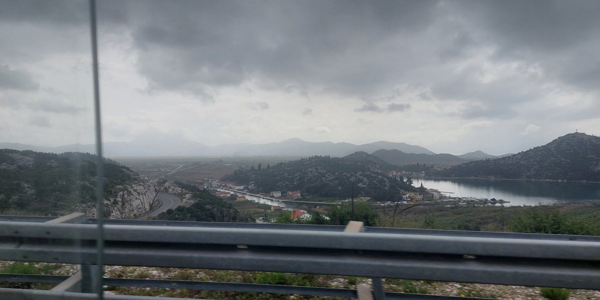Doch Google Maps funktioniert ja weiter. Bis ich es bei meiner Fotografiererei verliere. 😮😒 Wir fahren aber weiter geradeaus durch eine Kilometer lange Baustelle. Ich sage: irgendwas stimmt hier nicht. Wir kommen an einem grossen See vorbei machen ein Foto und fahren weiter. Als nächstes steht mal wieder ein Streifenwagen am Wegesrand, davon gibt es hier viele. Rainer hält an und wir sind schon fast in Bosnien Herzegowina😒😮. Der nette Polizist sagt wir müssen 40 km zurück, durch die blöde Baustelle und in Niksic abbiegen. Mitten in der Baustelle steht auf einmal eine Baggerwalze mitten auf der Strasse. Ich sag zu Rainer der soll mal Platz machen!! Nein, er macht das Fenster auf und zeigt uns 3 Finger. Das Ende vom Lied, wir müssen hier warten 2 - 3 Stunden. Nach knapp 2 Stunden können wir endlich weiter fahren. In Bijela auf dem Campingplatz am Kotorfjord, sind wir beide ganz schön geschafft.