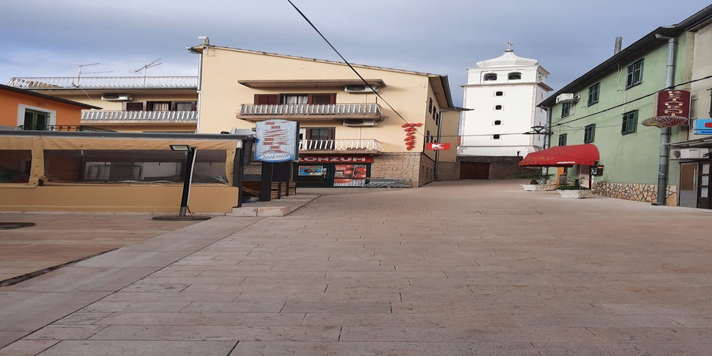 Am nächsten Morgen fahren wir die 50 km nach Kroatien. Dort haben wir unser eigenes Internet und Rainer nimmt sein bestelltes Paket entgegen. Für mich sind Lakritze dabei. Wir haben bestes T-Shirt Wetter. Nach unserem Einkauf machen wir eine Runde am Wasser. Bei der Sicht auf den Wetterbericht kriegen wir einen Schreck, ab Samstag wird das Wetter eine Katastrophe, aber Gottseidank nicht so schlimm wie in Spanien.