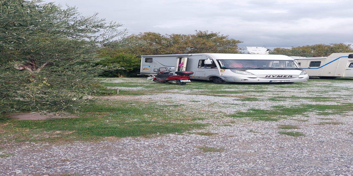 Die Fahrt verlief bis kurz vor Thessaloniki unkompliziert. Dann fuhren wir durch eine ewige lange Baustelle einmal rund um Thessaloniki, was für Rainer sehr anstrengend war. Den Stellplatz fanden wir ohne Probleme und er war offen und fast leer.